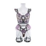 Het bh-korset is perfect ontworpen om je figuur prachtig te accentueren en je decolleté te benadrukken, waardoor je er onweerstaanbaar uitziet en jouw sensuele uitstraling wordt versterkt. De bijpassende string biedt de perfecte balans tussen comfort en verleiding, en sluit naadloos aan bij de rest van de set voor een harmonieus geheel. De jarretels voegen een vleugje klassieke elegantie toe, met de mogelijkheid om kousen te dragen voor een extra verleidelijke en complete look.