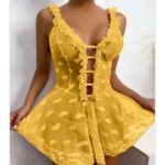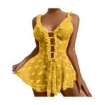 Met een zacht doorschijnende stof die je contouren zacht accentueert, straalt deze gele lingerie jurk een speelse en toch elegante uitstraling uit. De vloeiende lijnen en de subtiele afwerking benadrukken de gratie van elke beweging, terwijl de kleur als een warme zonnestraal je schoonheid omarmt.
