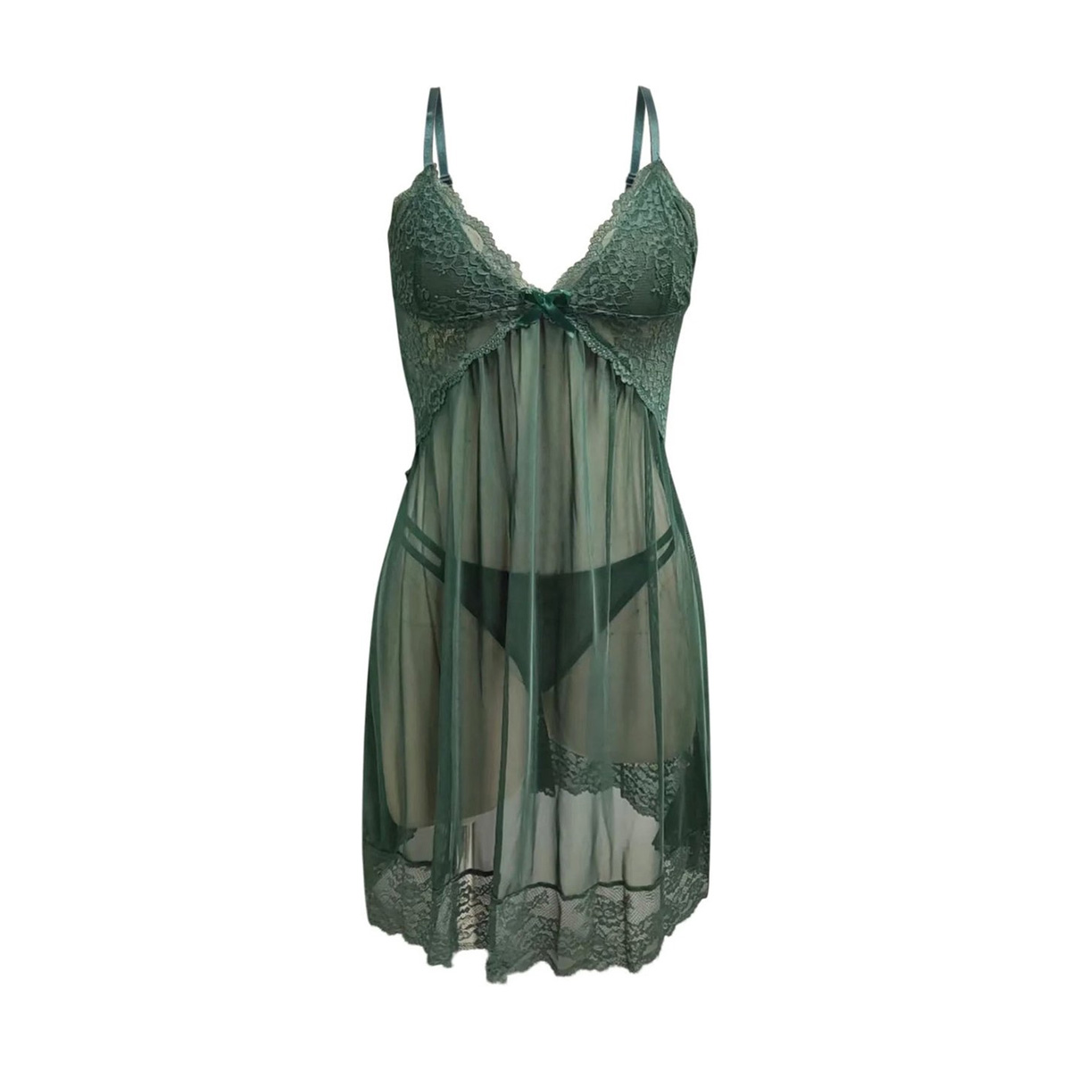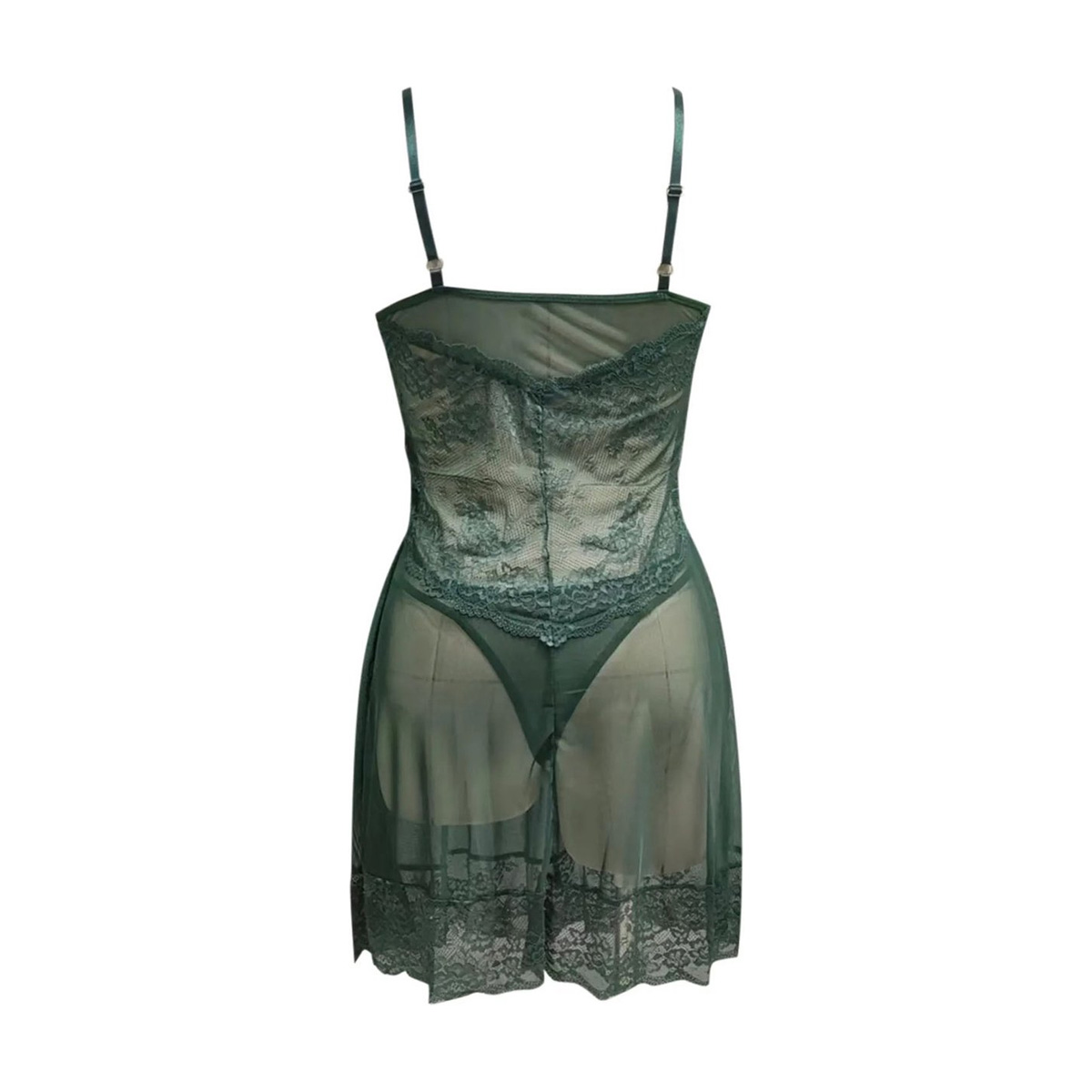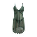 Ontdek de betovering van de nacht in onze Aantrekkelijke Nachtjurk “Green Kermit”. Deze verleidelijke creatie, compleet met een bijpassende slip, belichaamt de essentie van erotische lingerie. De nachtjapon met zijn diepe decolleté en elegante V-hals omhult je in weelderigheid en verfijning. Laat jezelf onderdompelen in de allure van deze jurk, gemaakt om de nacht te transformeren tot een dromerige en sensuele ervaring.