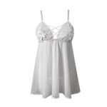 De slaapjurk is mouwloos, waardoor je je schouders en armen subtiel kunt blootstellen, wat een vleugje verfijning toevoegt aan je look. De transparante stof onthult subtiel een glimp van je huid en laat je vrouwelijke vormen op een elegante manier doorschijnen, waardoor het een opwindende en sensuele uitstraling heeft.